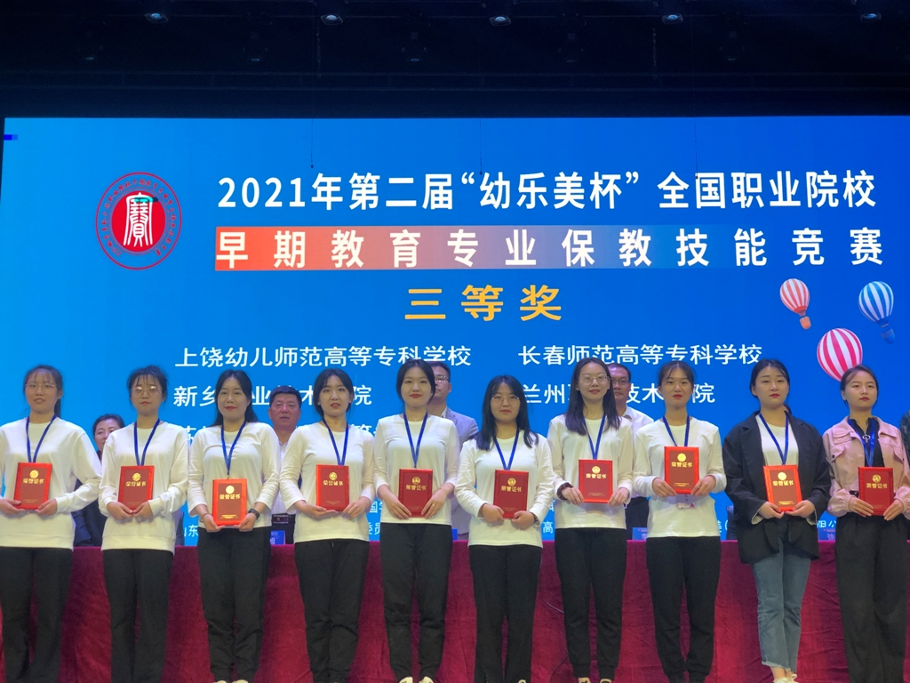 学校领导班子对早期教育保教技能国赛高度重视,在辅导教师的悉心指导下,我校学前教育学院早期教育专业学生姜佳岑、王欣宇、李家慧组成的代表队不懈努力、认真备赛。经过激烈地角逐,三名参赛选手充分展现了早期教育教师的职业素养和专业技能水平。以过硬的心理素质和拼搏精神,凭借自身实力在比赛中出色发挥,从44支代表队中脱颖而出,荣获第二届早期教育专业学生保教技能竞赛团体三等奖。这是我校首次代表吉林省参加此项国家级赛事,充分展示了我校早教专业学生良好的精神风貌和技能水平。