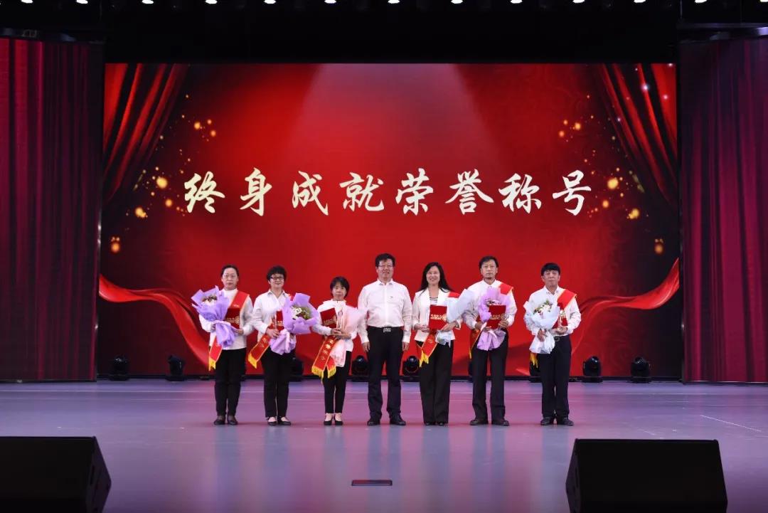 党委书记崔国涛为获得“终身成就荣誉称号”的老教师颁奖