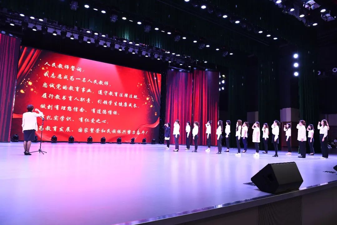 史书华带领新入职教师庄严宣誓,与全体教师一起重温誓词