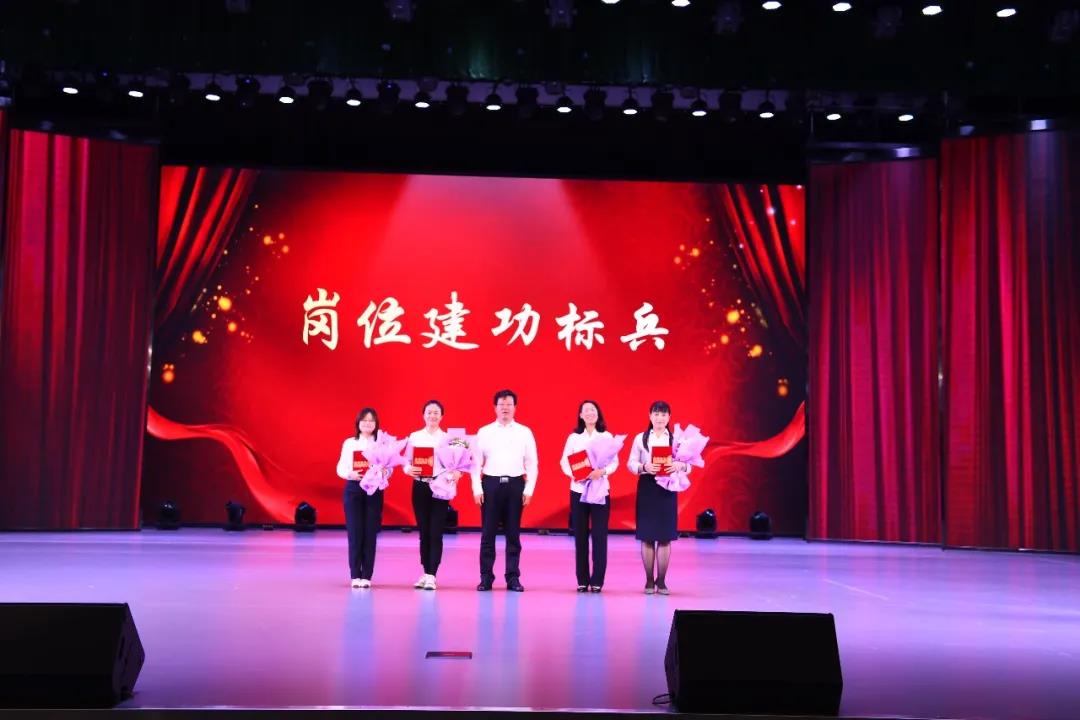 校党委书记崔国涛为获得“岗位建功标兵”的教师颁奖