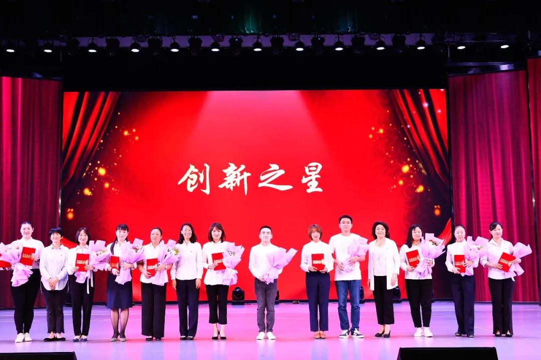 基础理论教研室主任聂立君、英语教研室主任刘晶、舞蹈教研室主任史红茵为获得“创新之星”的教师颁奖