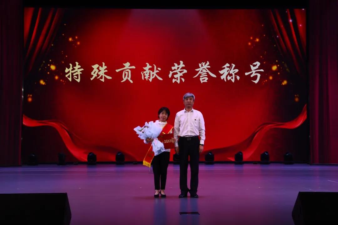 党委委员、纪委书记张建村为获得“特殊贡献荣誉称号”的教师颁奖