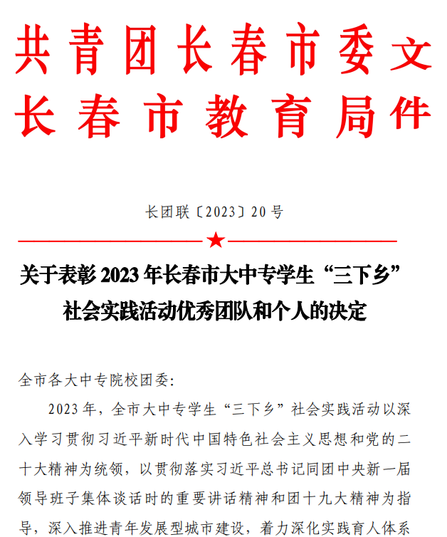 我校在2023年长春市大中专学生“三下乡”社会实践活动中再获佳绩